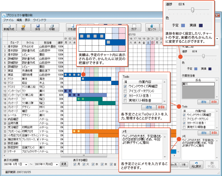 担当者別プロジェクトの印刷も可能!
