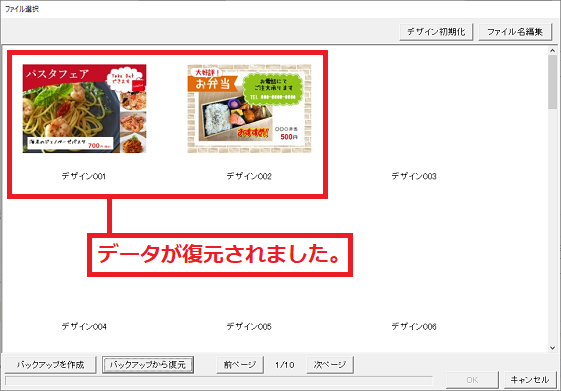 「ビジネスで使えるPOP・チラシ・メニュー印刷3」のバックアップデータも