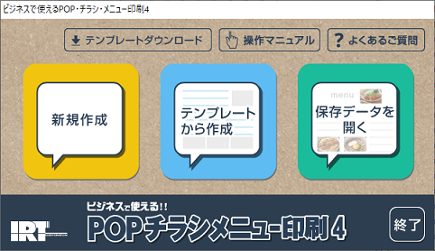 | 新規作成 | デザインを新しく作ります。 用紙選択画面が表示されます。 |