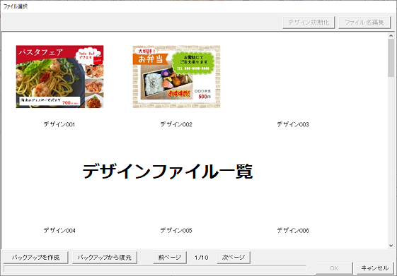 現在表示されているページの次のページのデザインファイル一覧を表示します。
