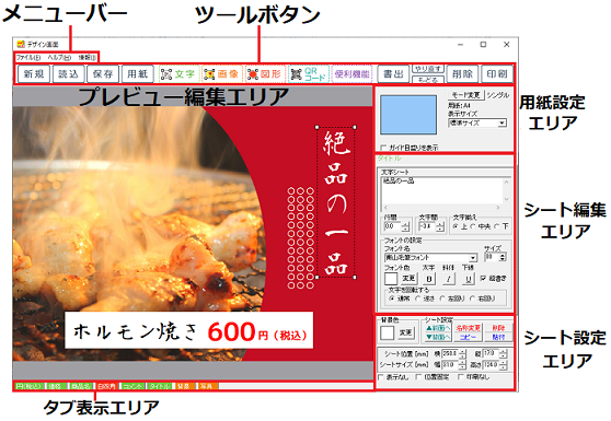 | 用紙型番 | プレビュー編集エリアに表示している 用紙の型番が表示されます。 |
