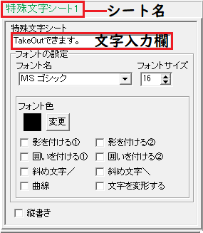 | 特殊文字入力欄 | 文字を入力します。 「文字を変形する」は全角20文字、半角40文字まで入力できます。 |