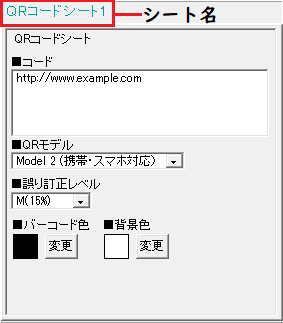 シート編集エリアではQRコードの設定を行います。