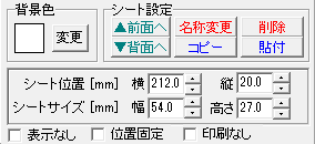 シート設定は背景色、シート設定、シートの位置・サイズ等を設定する時に使用します。
