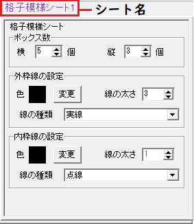 | ボックス数 | ▲▼をクリックして、ボックスの横の数、縦の数を設定します。 |