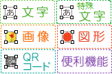 「文字」「特殊文字」「画像」「図形」「QRコード」