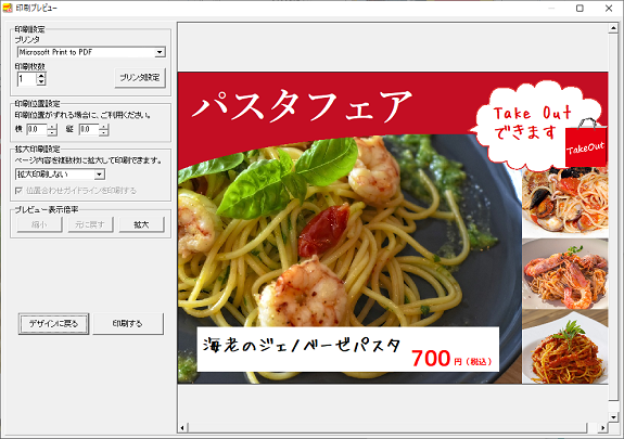 印刷プレビュー画面を閉じてデザイン画面に戻ります。