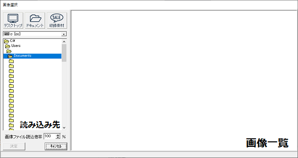 読み込み先で指定した場所にある画像の一覧を表示します。