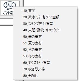 ボタンをクリックすると収録素材のジャンルが表示されます。
