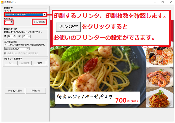 印刷するボタンをクリックして印刷します。