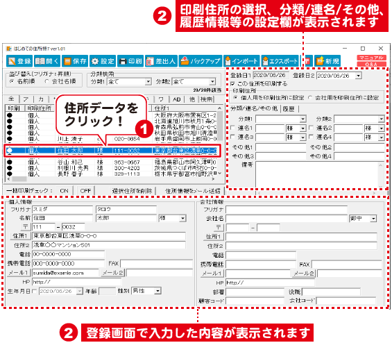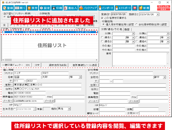 メイン画面の住所録リストから、データを編集する住所情報を選択します。