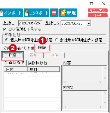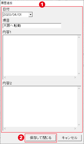 「登録」ボタンをクリックすると、 履歴追加画面が表示されます。