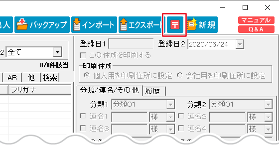 「〒」 ボタンをクリックして、 新しい郵便番号データの取得画面を 表示します。