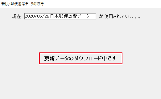 更新する場合は、上記の画面で「はい」ボタンをクリックしますと、郵便番号データのダウンロードが始まりデータが更新されます。