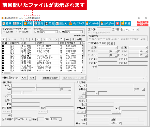 住所録データが開きます。