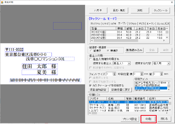 「○標準」を選択すると、印刷リストの宛名をすべて印刷します。