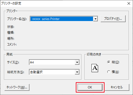 ※プリンターの設定はお使いのプリンターごとに異なりますので、詳しくはプリンターの説明書をご覧ください。