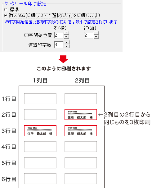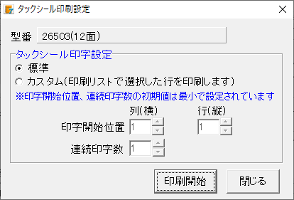 次に、「OK」ボタンをクリックして、タックシール 印刷設定画面を表示します。
