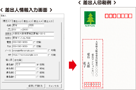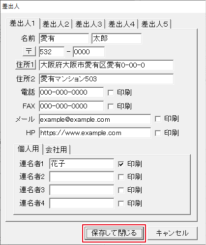 2. 差出人情報を入力するタブを選択して内容を入力します