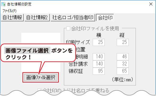 [会社印ファイルを使用]をクリックしてチェックを入れます。