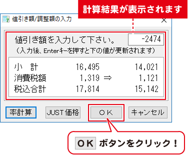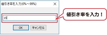 税別・税込合計から値引きする値引き率を入力してOKボタンをクリックします。
