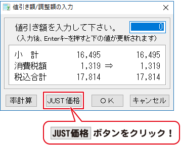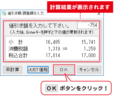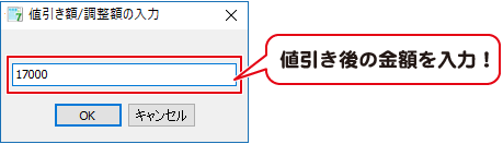 税別合計金額から値引きしたい金額を入力して「Enter」キーを押します。