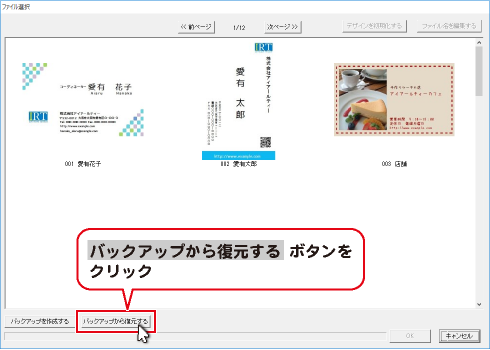 ※「はじめての名刺印刷4」のバックアップデータも復元できます。