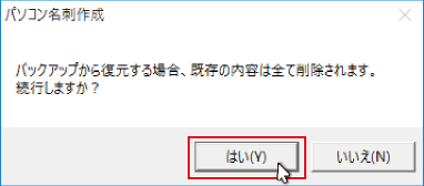 確認画面が表示されますので、内容を確認し、はいボタンをクリックします。