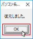 バックアップから復元が終わると確認画面が表示されますので、
