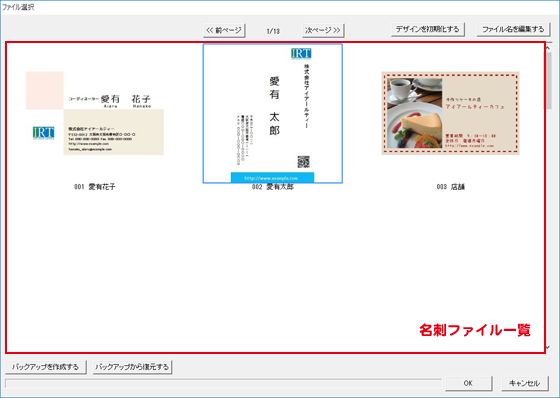 メイン画面でファイルを開く時、名刺のファイルをバックアップする時などにも