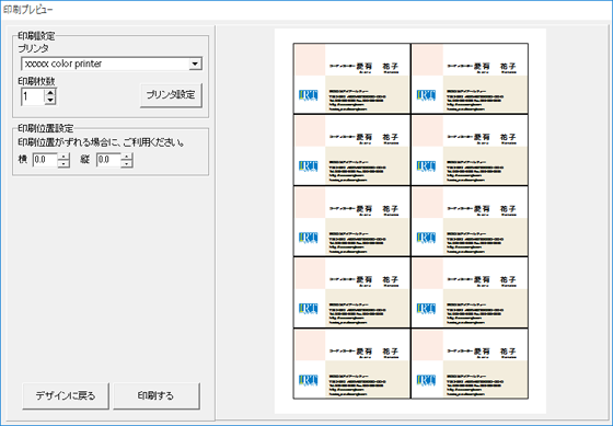 印刷位置がずれる場合に、各横・縦の項目の▲▼ボタンをクリックして印刷位置を設定します。