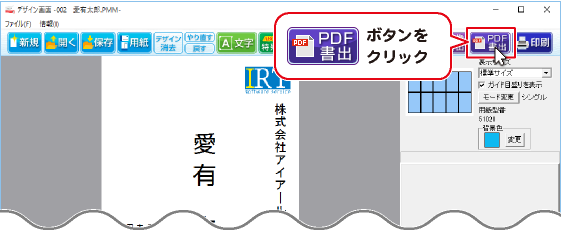 まず、画像に書き出したい名刺ファイルを開いて、デザイン画面に表示します。
