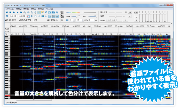 『誰でもできる耳コピソフト』は音源を解析して、かんたんに採譜できるソフトです。
