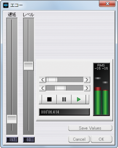 音楽の指定した範囲にエコーやセンター部分を除去・抽出などができます。