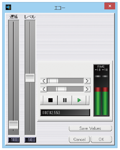 音楽の指定した範囲にエコーやセンター部分を除去・抽出などができます。