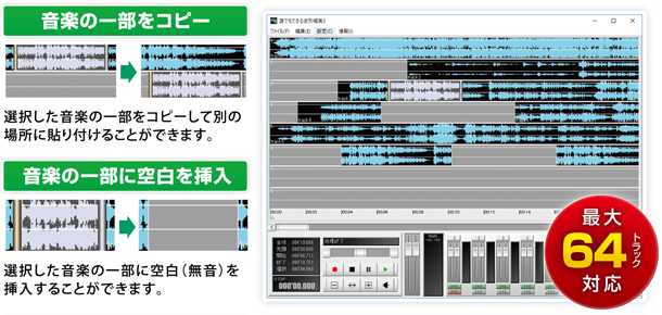 また、指定した範囲を無音にしたり、削除したり、