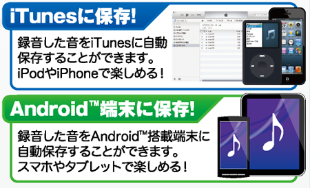 録音した音をiTunesやAndroid端末へ転送することができます。