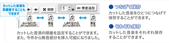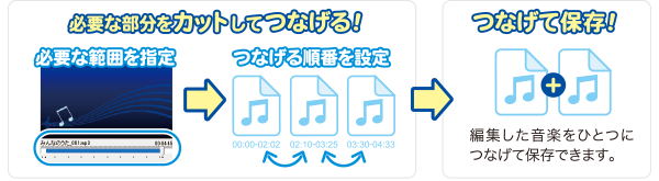 用途に合わせて、複数の音楽をつなげて(結合して)保存したり、