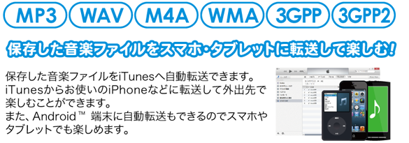 音楽を保存する際、iTunes、Android機器へ自動登録できます。