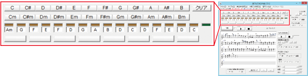 ボタンをクリックするだけで自動的に楽譜が作成され、音を聴きながら作業できるので、