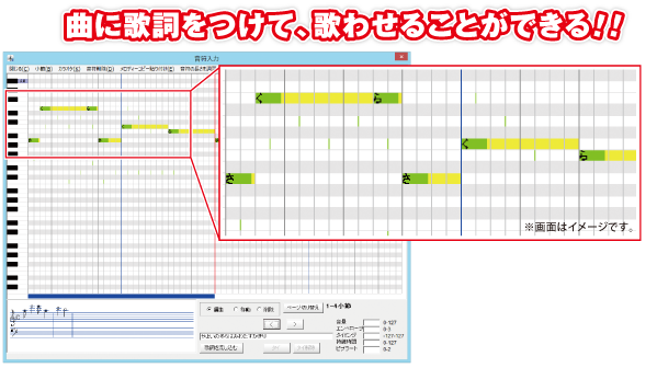 作成した曲に歌詞を付けてソフトに歌わせることもできます。