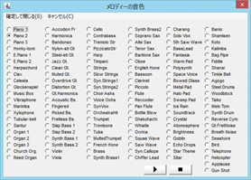 メロディー、コード、ベース、ドラム、アルペジオに設定できる音色、