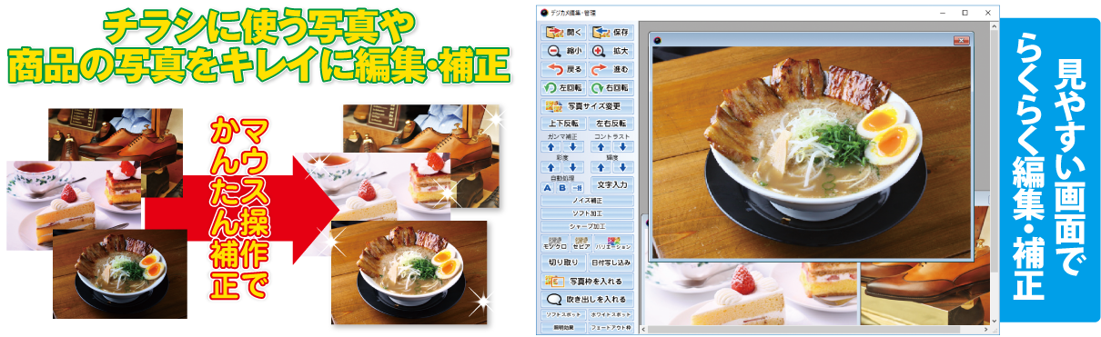 『デジカメ編集・管理』はマウスのクリック操作で写真をかんたんに補正、