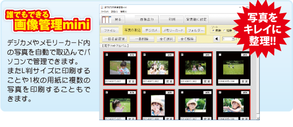 ソフト内で整理することができる「誰でもできる画像管理mini」を付属、