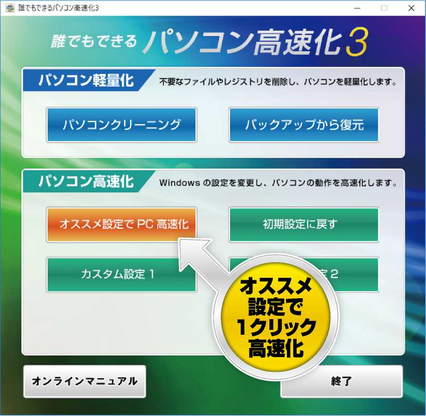 『誰でもできるパソコン高速化3』でパソコンを高速化!