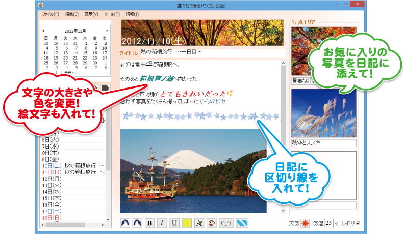 『誰でもできるパソコン日記』はかんたんな操作で、