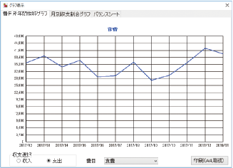 グラフ以外にも、費目 / 摘要 / 自由項目 / 期間 / データ入力日など