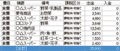 費目 / 摘要 / 自由項目 / 期間 / データ入力日など目的に応じて