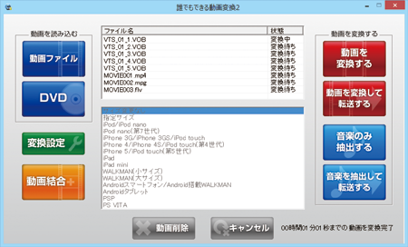 「誰でもできる動画変換2」は、パソコン上の動画ファイルやお手持ちのDVDを変換して