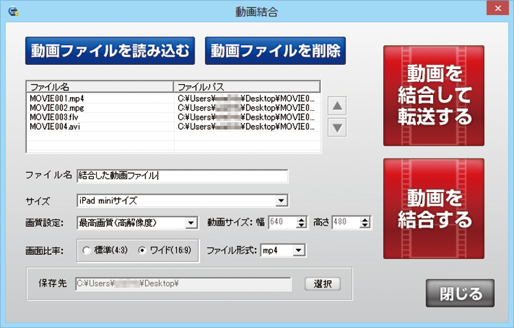 変換した動画をパソコンの好きな場所に保存するほか、直接iTunesや対応機種に